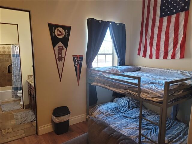 Sleeping accommodations include guest rooms and shared sleeping spaces designed for group stays. Rooms are arranged to support overnight retreats, families, and organized groups.