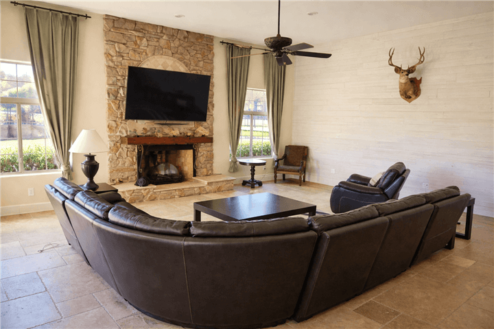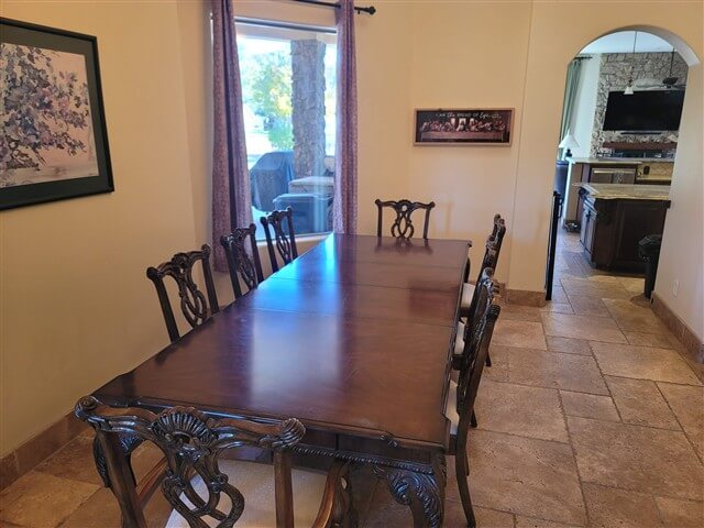 The Main Lodge serves as the primary indoor gathering space at Vermillion Ranch. This area is commonly used for group meetings, teaching sessions, shared meals, and informal conversation throughout retreats.