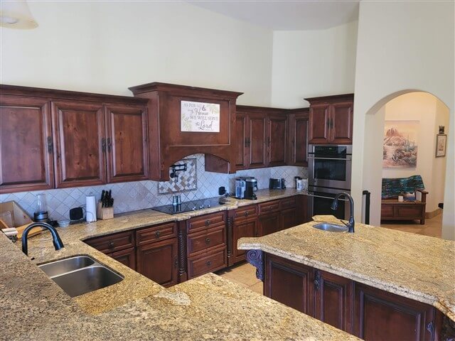 The adjacent kitchen provides space for meal preparation during retreats, volunteer events, and hosted gatherings, allowing groups to manage meals on-site throughout their stay.