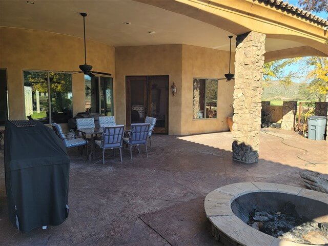 Outdoor gathering areas allow groups to meet and spend time together outside. Covered patios and seating areas provide space for group discussions, activities, and quiet moments throughout retreats.